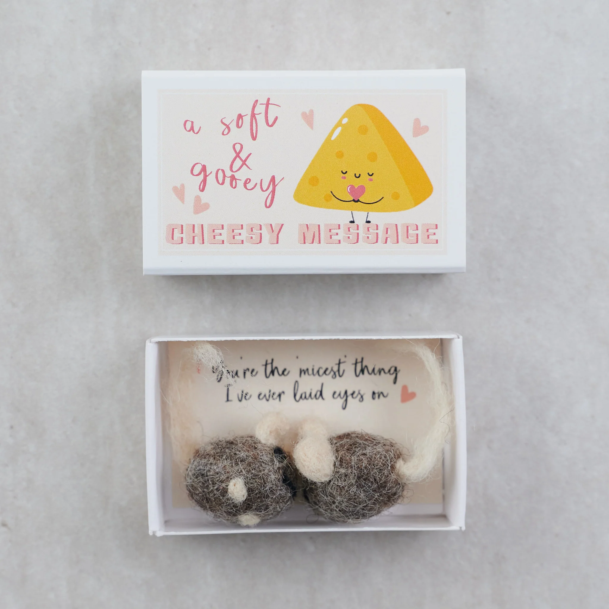 This fun, yet romantic matchbox, is guaranteed to make a lasting impression on a loved one. Peek inside the box to discover two little handcrafted wool felt mice, accompanied by the heartfelt message: 'You're the micest person I've ever laid eyes on.'