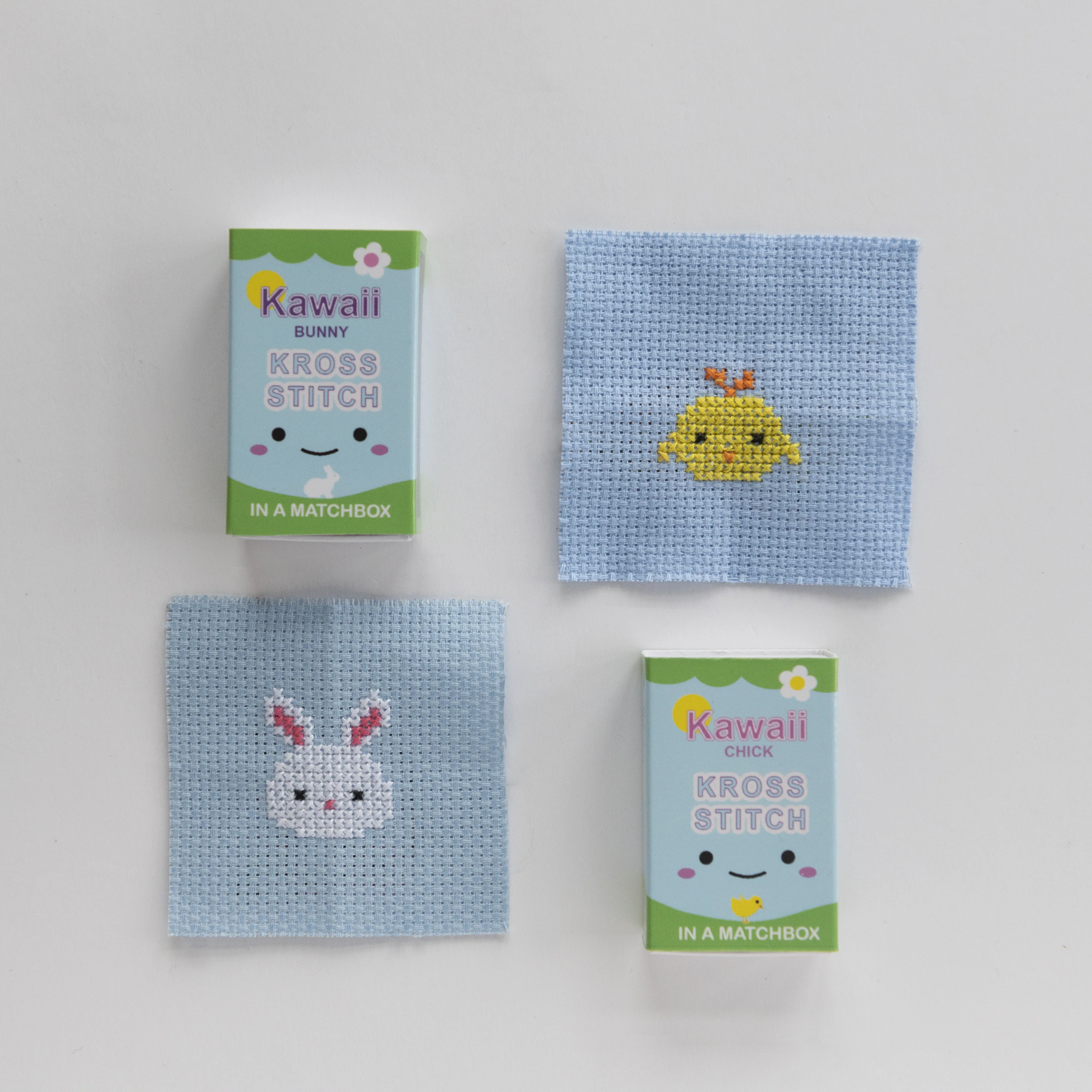 Everything you need to make this mini Kawaii style chick cross stitch pattern is packed neatly into a matchbox.