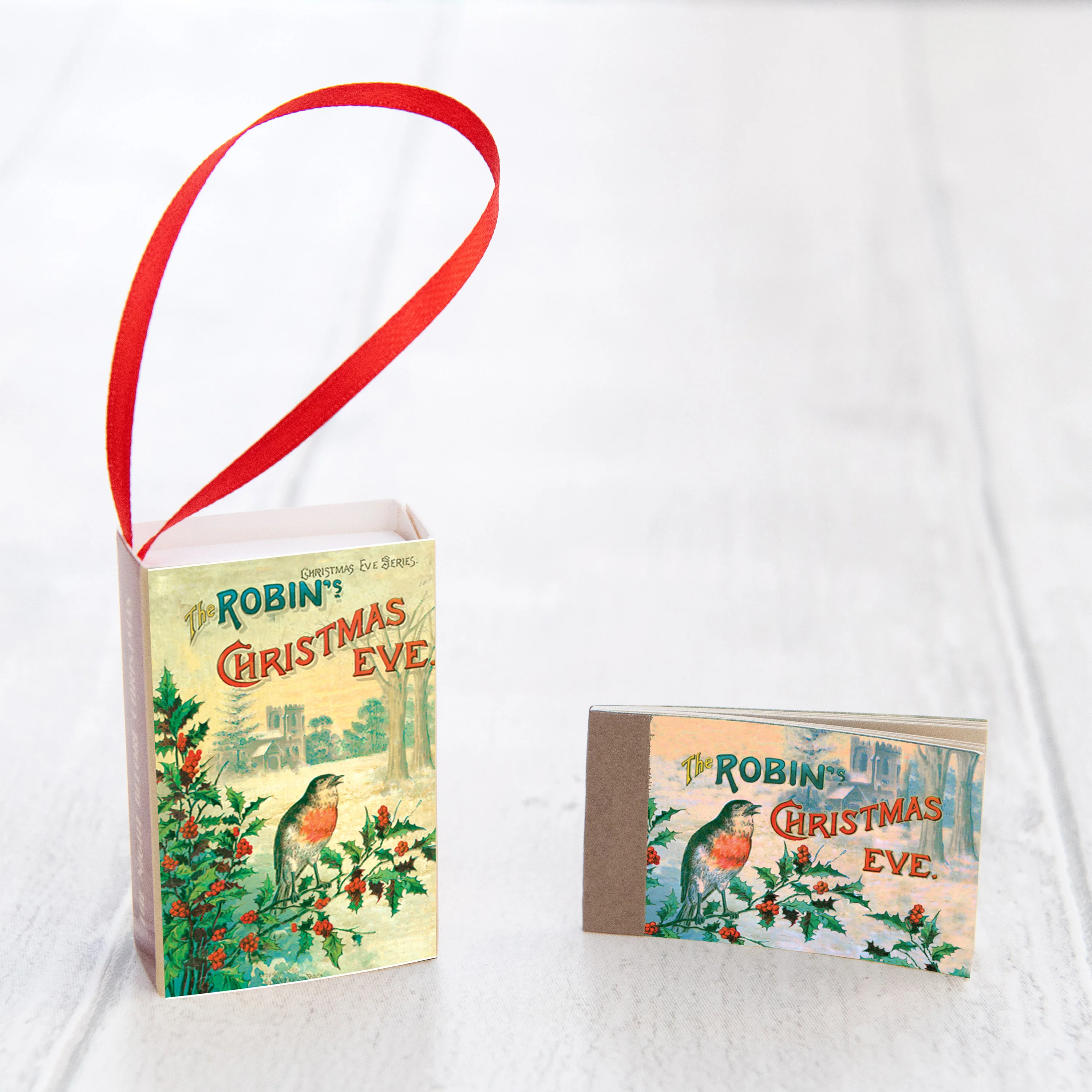 Bring back the excitement of story time with this unique matchbox containing the full original text and charming images from the vintage poem 'Robin's Christmas Eve' recreated as a tiny paper book.
